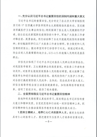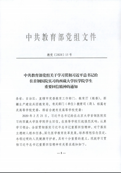 中共教育部党组关于学习贯彻习近平总书记给在首钢医院实习的西藏大学医学院学生重要回信精神的通知