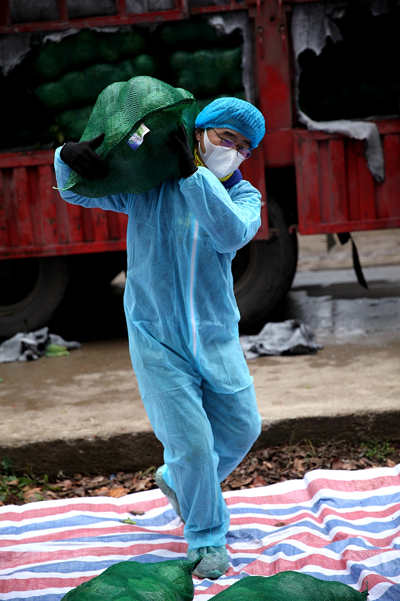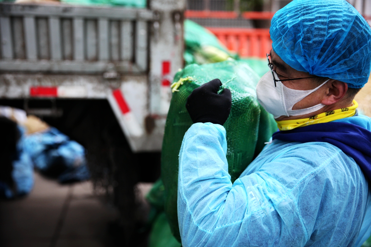 本网讯 2月7日,武汉因疫情封城第16天,从四川运来的一百吨爱心捐赠的新鲜蔬菜抵达武汉。我校建材学院党员职工张红兵,积极响应学校公开信“心中有阳光 脚下有力量”的号召,主动投身到这一百吨捐赠物资的卸载与分装志愿服务活动中,保证了这四卡车萝卜、圆白菜、青椒等蔬菜被尽早送到了6家医院、33家养老院、14个驻汉军事单位以及武昌区的一些社区。