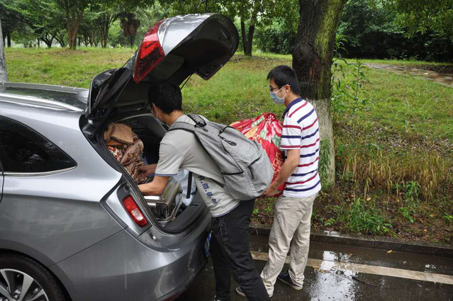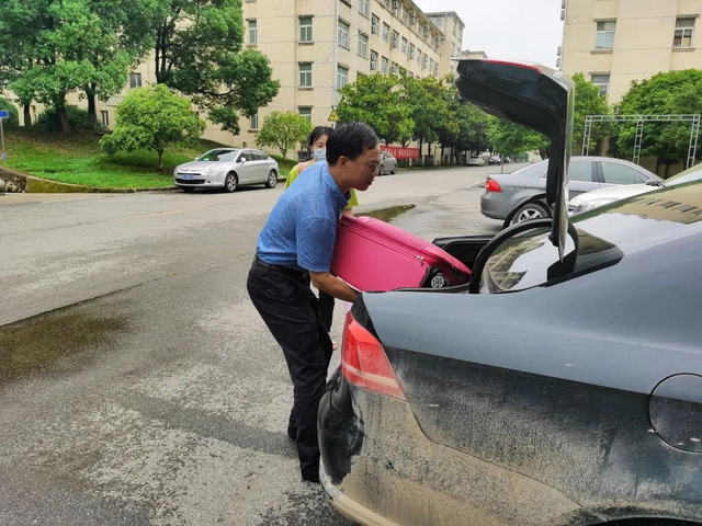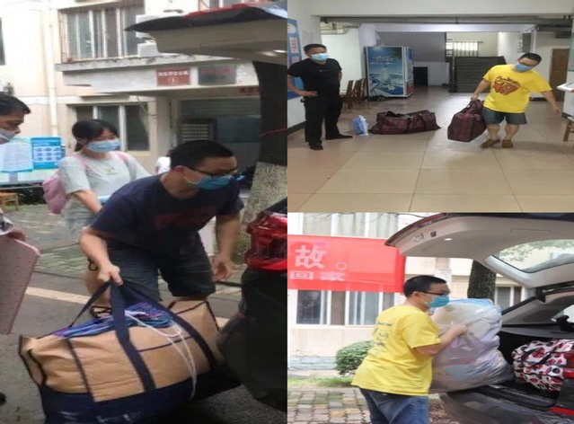 “师友·学友行动”联系部门科研处领导同教科院老师齐上阵,帮学生搬行李