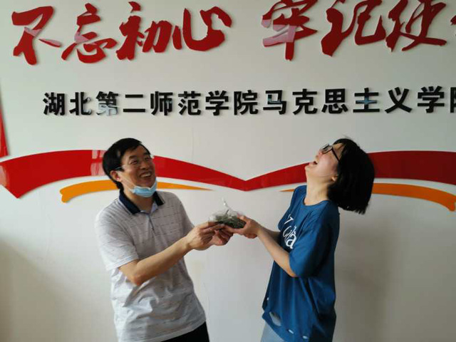 李烨红老师从家里专门为罗艺带来了粽子和咸蛋,而罗艺给老师带来家里的李子,让老师尝尝。罗艺今年考上华中科技大学。