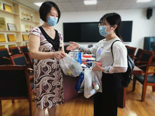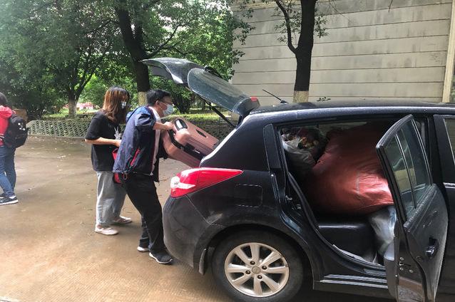“师友·学友行动”联系部门国际交流处副处长崔卿帮毕业生搬运行李