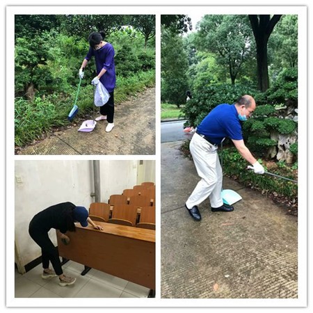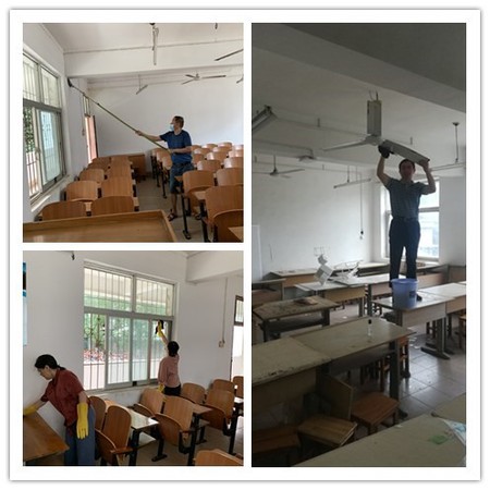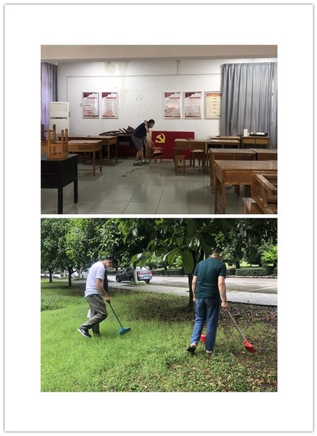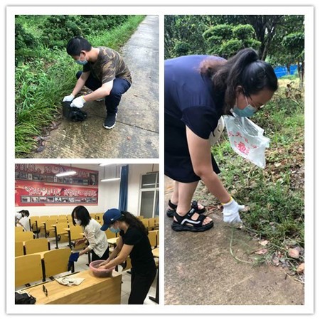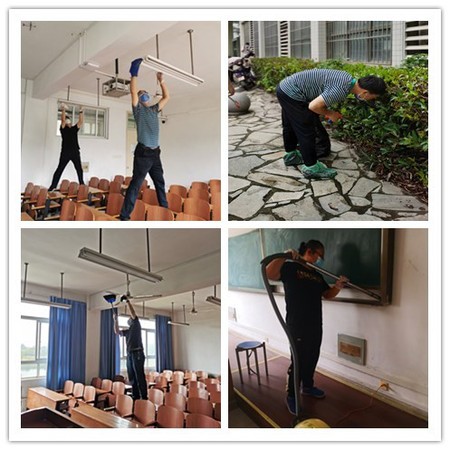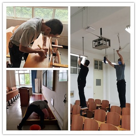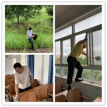 劳动期间,各部门领导班子率先垂范,干部职工积极主动,分工协作、密切配合、干劲十足。大家对教室门窗、桌椅、讲台、风扇等日常接触部位进行清理打扫,对机关包干区内草坪、小道等进行全方位无死角大扫除。有的拿起扫帚清扫地面,有的仔细铲除路灯杆的牛皮癣,有的提着垃圾桶在布满水渍、蚊虫肆虐的绿化带中捡拾垃圾,有的用撮箕或塑料袋清运垃圾……人多力量大,通过大家的辛勤劳动,校园环境面貌焕然一新,为2020届毕业生有序返校提供了良好的环境,筑起了坚固的卫生健康防线。