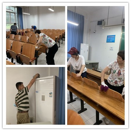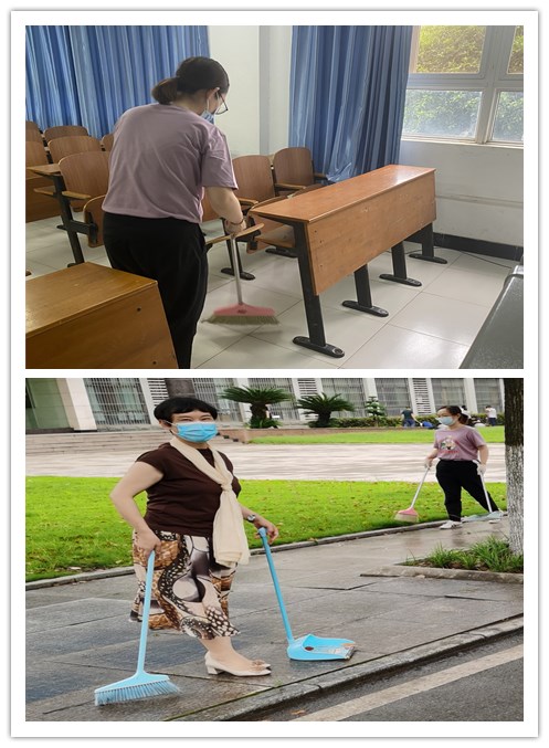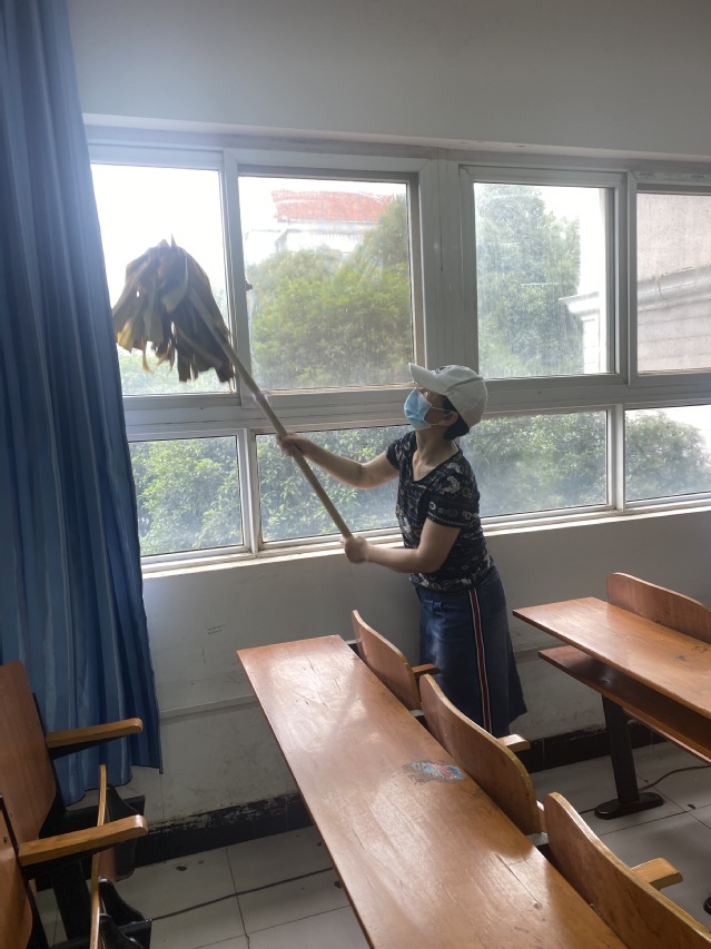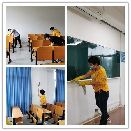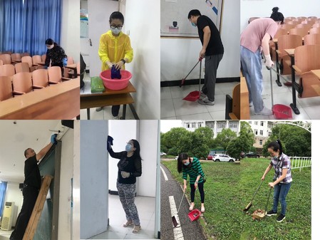 卫生是健康的前提,健康是生命的保障。为进一步做好疫情防控工作,营造干净卫生的校园环境,迎接2020届毕业生返校。结合学校爱国卫生运动的工作要求,6月15日---18日,机关全体党员干部开展了爱国卫生运动,对机关单位包干区域、教学楼教室等重点场所进行全面清洁消毒和清扫。