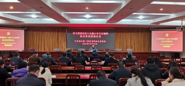 为深入学习贯彻党的十九届六中全会精神,12月16日下午,机关党委组织全体党员在行政楼5号会议室,举办学习贯彻党的十九届六中全会精神校内宣讲团报告会。报告会后,继续召开理论学习中心组学习党的十九届六中全会精神研讨会,各支部书记参加会议。机关党委书记库文静主持上述两项会议。