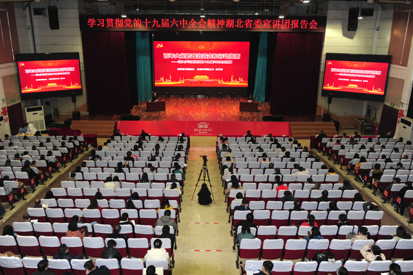 本网讯(融媒体记者 程丽鹃 见习记者 陈睿雯 蔡滢)按照省委统一部署,12月16日下午,学校在大礼堂举行党的十九届六中全会精神湖北省委宣讲团湖北第二师范学院报告会。省委宣讲团成员、省委讲师团主任高天琼受邀作报告。全体在校校领导出席,全校副高以上职称教师参加,校党委书记张国秀主持报告会。